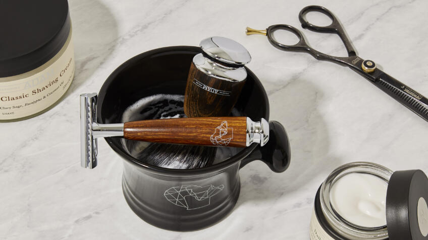 A safety razor is an investment piece and should therefore be treated like one. Look for one made from solid stainless steel, which will ensure it’s both long-lasting and stylish. Taking things a step further, the Adam safety razor is inlaid with ironwood, giving the handle a weighty yet comfortable feel.